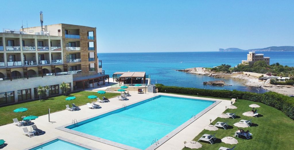 Das Smy Carlos V Alghero 5* ist ein luxuriöses Haus, das Ihnen einen unvergesslichen Aufenthalt an der Nordwestküste Sardiniens verspricht. Mit seinem modernen Design und dem atemberaubenden Panoramablick auf das Mittelmeer bietet dieses Hotel gehobenen Komfort für anspruchsvolle Gäste. Der großzügige Spa-Bereich lädt zur Entspannung ein, während die vielfältigen Aktivitäten vor Ort für Abwechslung sorgen. Die Zimmer sind stilvoll eingerichtet und verfügen über alle Annehmlichkeiten, die Sie für einen erholsamen Urlaub benötigen. Dank der Nähe zu Alghero können Sie die historische Altstadt bequem erreichen und zugleich die Ruhe eines erstklassigen Resorts genießen. Die gastronomischen Angebote des Hotels verwöhnen Ihren Gaumen mit mediterranen Spezialitäten, während Sie vom Pool aus den Blick aufs azurblaue Meer schweifen lassen können.