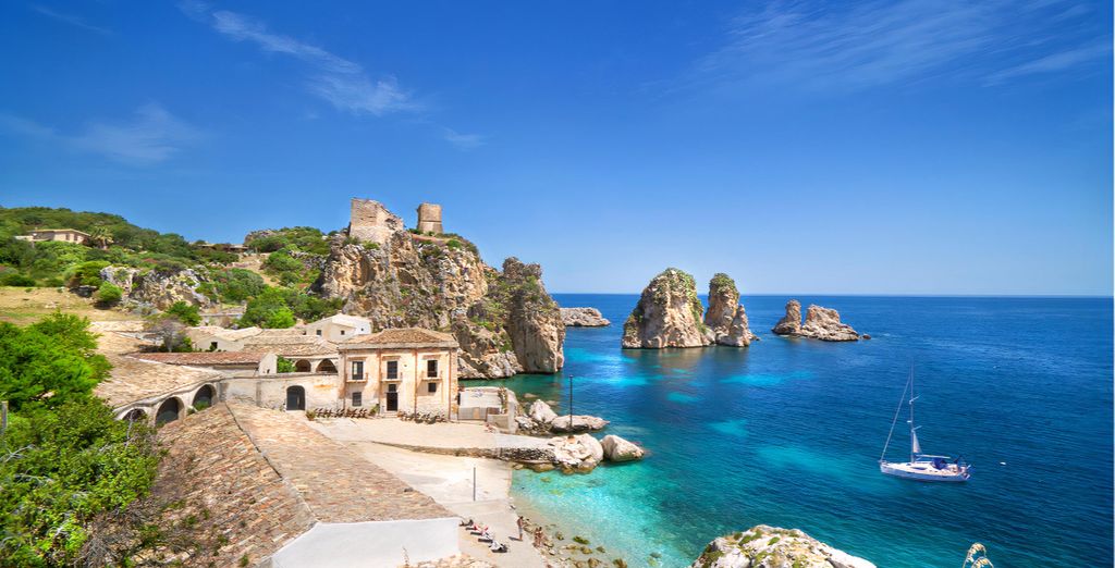 Die Strände rund um Trapani gehören zu den schönsten Siziliens und bieten Ihnen feinen Sand, türkisfarbenes Wasser und eine beeindruckende Kulisse. San Vito lo Capo ist einer der bekanntesten Strände der Region und begeistert mit einem langen, weißen Sandstrand, der von Bergen umrahmt wird. Hier finden Sie zahlreiche Strandbars, Restaurants und Wassersportangebote. Auch die Strände bei Scopello, in der Nähe des Zingaro Naturparks, sind einen Besuch wert und bieten Ihnen ruhigere Buchten und kristallklares Wasser. Viele Hotels in der Region verfügen über eigene Privatstrände oder direkten Strandzugang, sodass Sie ungestört entspannen können. Die Strände eignen sich hervorragend zum Schwimmen, Schnorcheln und Sonnenbaden und sind sowohl für Familien als auch für Paare ideal.