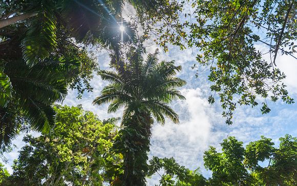 Die 29 m² große Suite ist in sanften Farben dekoriert, die an das Meer, den Strand und die grüne Vegetation erinnern. Hochwertige Holzmöbel und moderne Ausstattung sorgen für einen angenehmen Aufenthalt. Von Ihrem Balkon aus können Sie auf den schönen Garten und den Pool blicken.