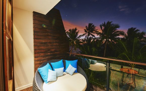 Das Beach Front Zimmer befindet sich auf der Vorderseite des Hauptgebäudes, nur wenige Schritte vom Strand und den wichtigsten Hotelausstattungen entfernt. In diesem Zimmer kann die Aussicht auf das Meer teilweise oder vollständig von den Palmen im Strandgarten verdeckt sein. Vom möblierten Balkon aus kann man dennoch den Klang des Meeres genießen. Ausgestattet mit einem King-Size- oder Twin-Bett, Klimaanlage, Smart TV, Minibar, Safe, Tee- und Kaffeekocher sowie einem privaten Badezimmer mit Regendusche.