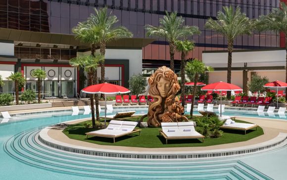 Besuchen Sie einen der fünf Pools mit Panoramablick, die sich alle im fünften Stock befinden. Mit mehreren Pool- und Snackbars sind Erfrischungen und Leckereien immer in Reichweite. Für ein umfassendes Erlebnis mieten Sie sich eine Liege, eine Cabana oder einen privaten Bungalow!