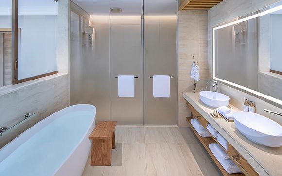 Für diejenigen, die es etwas aktiver mögen, gibt es eine große Auswahl an Freizeiteinrichtungen, darunter Pool, Fitnessstudio, Padel-Platz, einen Kids- und einen Teen-Club. Wassersport und andere Freizeitaktivitäten stehen Ihnen ebenfalls zur Verfügung.